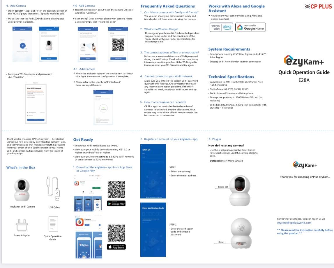 CP PLUS 2MP Full HD Wi-fi CCTV Camera | 360°View PT Camera | Motion Tracking | Cloud Monitoring | 2-Way Talk, Night Vision| Support SD Card (Up to 256 GB) | Privacy Mode - CP-E28A